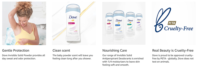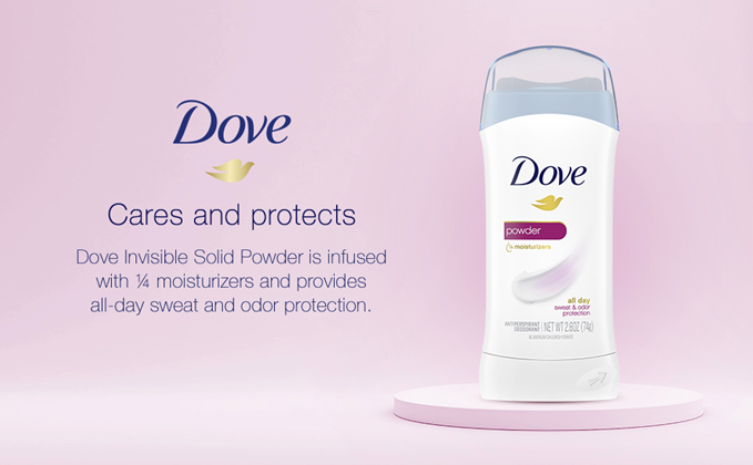 For soft, smooth underarms and invisible protection that lasts all day, look no further than Dove Invisible Solid Powder Antiperspirant Deodorant Stick. Formulated with ¼ moisturizers, this antiperspirant deodorant for women leaves your underarm skin feeling soft and smooth. The 0% alcohol (ethanol) formula helps your underarm skin recover from irritation caused by shaving, too. And it doesn't stop there. This deodorant stick gives you all day antiperspirant protection from underarm sweat and odor, has a powdery scent that indulges your senses throughout the day, and glides on for easy application. Plus, it’s invisible and leaves no white marks behind, so you can stay fresh, comfortable and confident all day long. To get the most out of your antiperspirant deodorant stick, swipe it over cool, dry underarms two or three times until an even layer is applied. Its invisible solid format means you can get dressed and go, without worrying about deodorant stains. At Dove, our vision is of a world where beauty is a source of confidence, and not anxiety. So, we are on a mission to help the next generation of women develop a positive relationship with the way they look - helping them raise their self-esteem and realize their full potential. Globally, Dove does not test on animals, so all of our antiperspirant deodorants are cruelty-free and certified by PETA for added peace of mind.