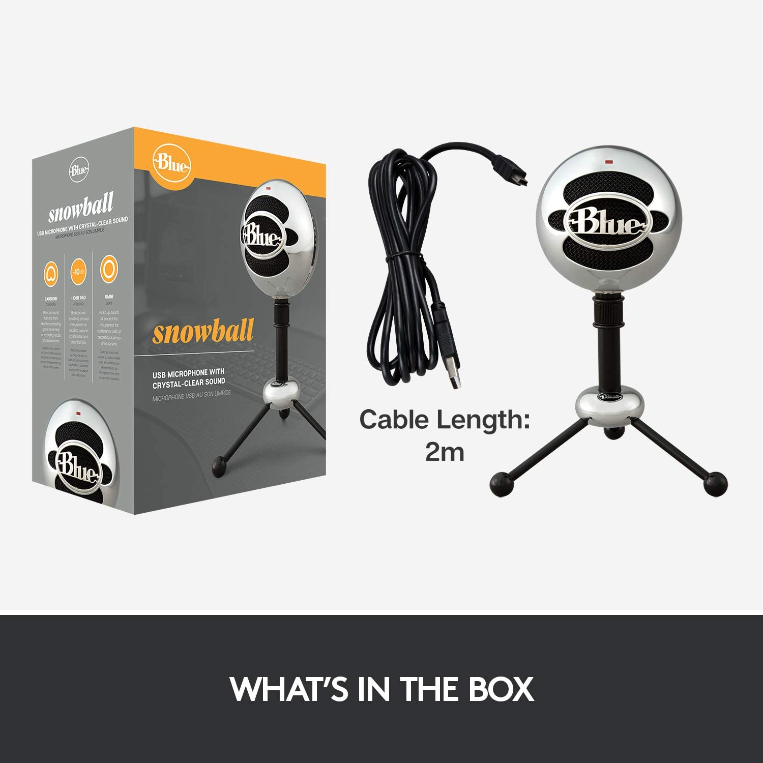 -10 dB Pad: Maintains professional audio quality and keeps Snowball sounding clean and distortion-free on louder voices and instruments for everything from voiceovers to podcasts to singing