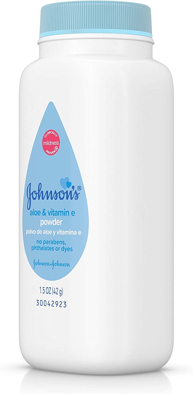 • 1.5-ounces of Johnson's baby powder with naturally derived cornstarch, aloe, and vitamin E provides a gentle way to soothe your baby's skin and leave it feeling soft and smooth