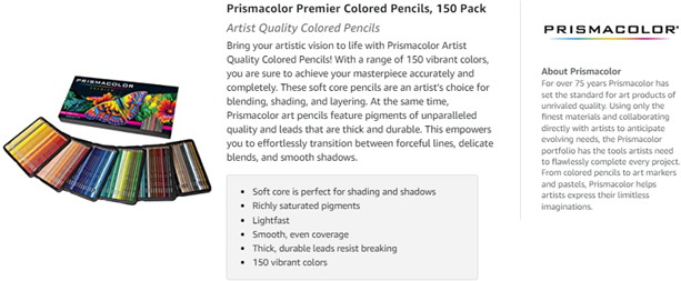 Bring out the soft side of any illustration or art project with Prismacolor Premier Colored Pencils featuring soft cores. Inside the box you’ll find 150 coloring pencils featuring creamy cores that are the artist’s choice for blending, shading, and layering. Prismacolor colored pencils have pigments of unmatched quality and leads that are strong enough to be sharpened to a precision point. That means you can effortlessly switch between powerful lines, delicate blends, and silky shadowing.