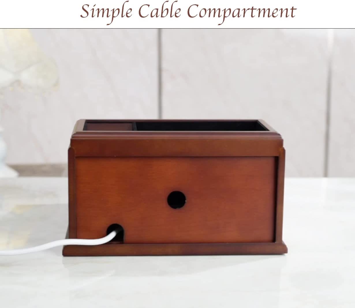 Arolly Wood Finish Valet Charging Station Multi Device Cord Organizer with Pull Out Drawer Compatible with iPhone, Samsung, and other Smartphones, Can Store Watches, Jewelry and more