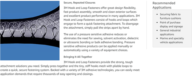 3M Hook/Loop Fastener TB3571/TB3572 is our best in class fastener that provides design flexibility and fast product assembly. With its high performance acrylic-based pressure sensitive adhesive backing, this fastener allows for easy and convenient attachment to a variety of substrates including some high surface energy plastics such as polycarbonate, acrylic, ABS, polystyrene.