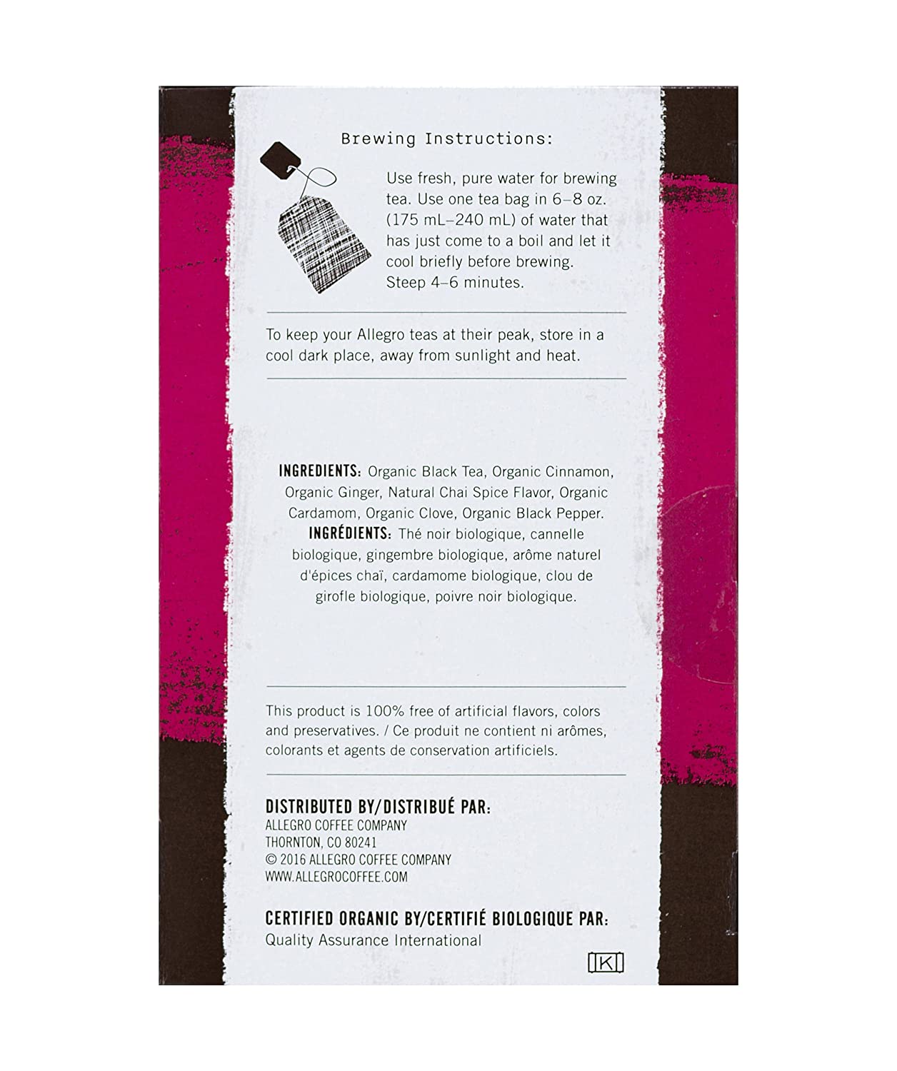 Allegro Tea, Organic Indian Chai Tea Bags, 20 ct