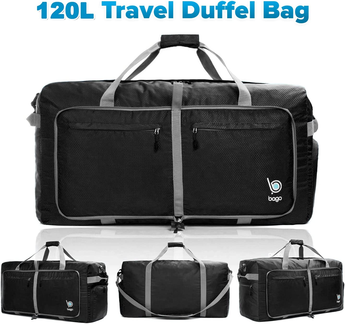 Bago Travel Duffel Bags for Traveling Women & Men- Foldable Weekender Bag - 80L 27" Large Duffle Bag For Travel & Camping Bag - Packable Lightweight Overnight Luggage bag (Black)