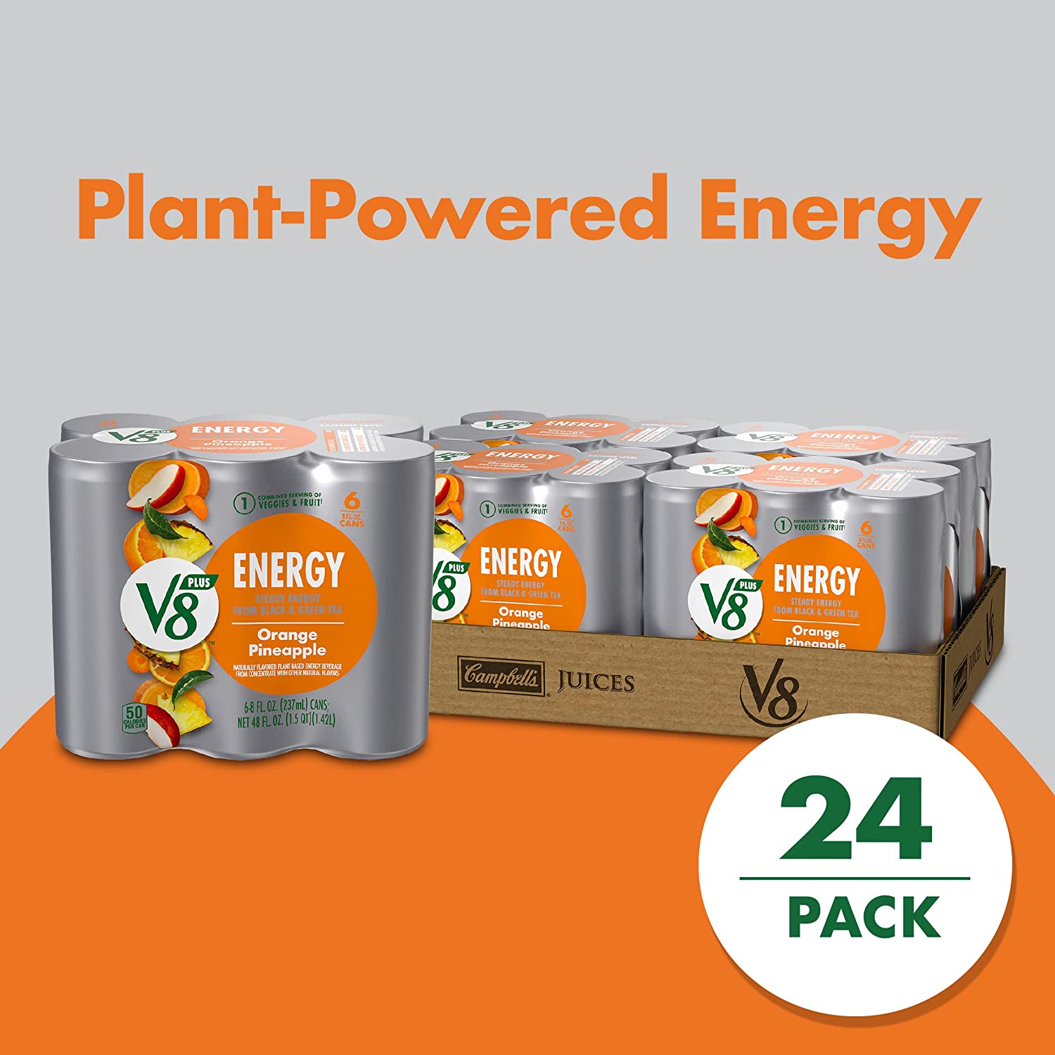 Fruit flavored energy drinks: twenty-four (24) 8 fl oz cans of V8 +ENERGY orange pineapple energy drink