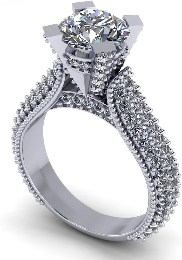 Madina Jewelry 2.65 ct Pave Set Round Cut Diamond Engagement Ring in 18 kt White Gold