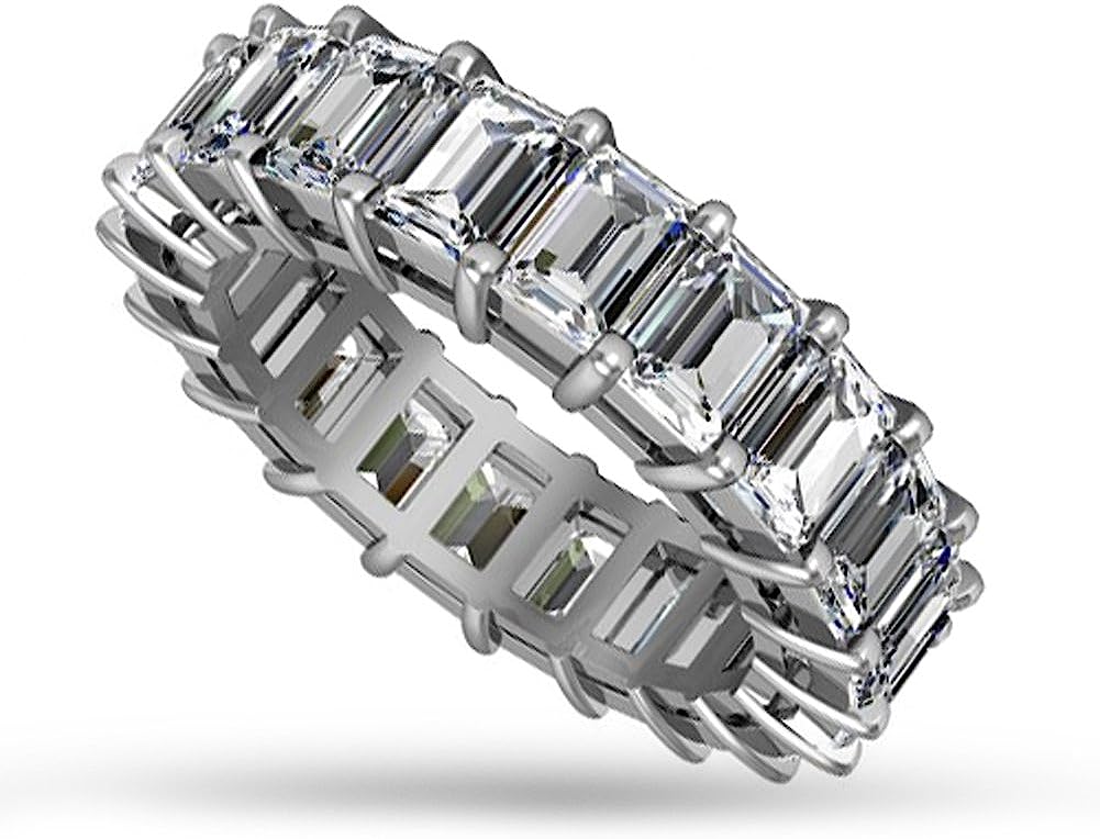 Madina Jewelry 5.00 ct Emerald Cut Diamond Eternity Wedding Band Ring in 14 kt White Gold