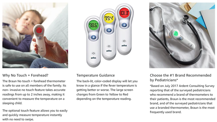 • A BRAND YOU CAN RELY ON – Braun thermometers are the most recommended by pediatricians.* Your family’s health is of the utmost importance, and we make contactless thermometers and digital thermometers you can trust.