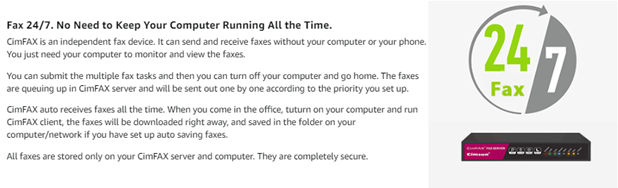 CimFAX fax server is a smart device that works with your pc, tablet and smart phone.