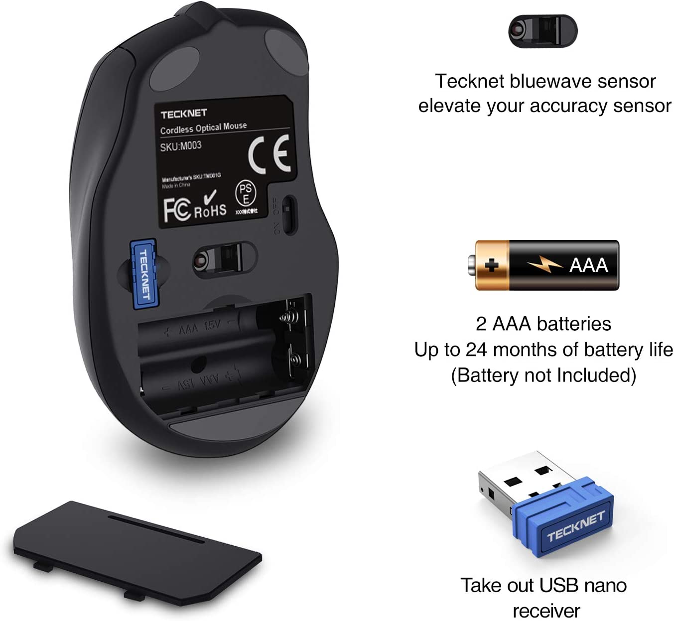 TECKNET Tru-Wave Technology: Wireless gaming mouse provides precise, intelligent cursor control over many surface types. TECKNET Co-Link technology – no need to re-establish pairing if a signal is lost or shut down.