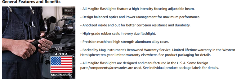 | Included Components | One Maglite ML300L 6-Cell D LED Black Flashlight |