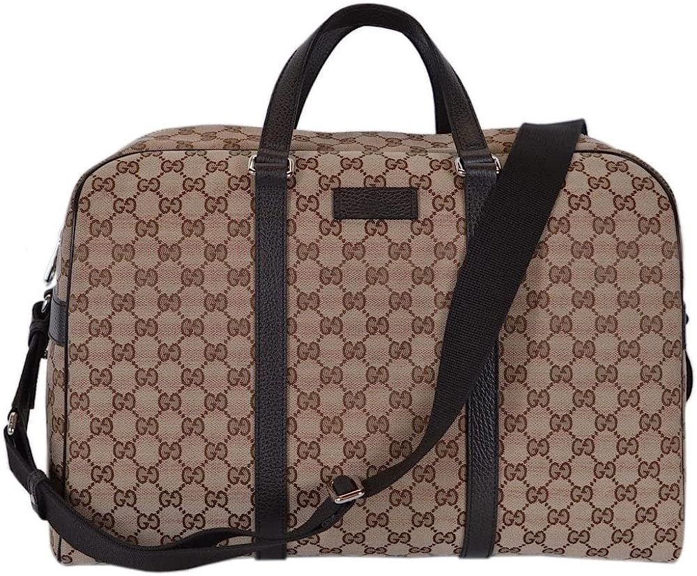A favorite Gucci travel piece this large beige and brown canvas Gucci GG canvas duffle bag will make your next trip a breeze. This roomy luggage piece has room for clothes, shoes, and toiletries. Model 610105