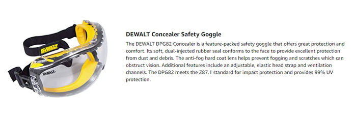 Included Components | Dewalt Concealer Goggle Clear Lens |