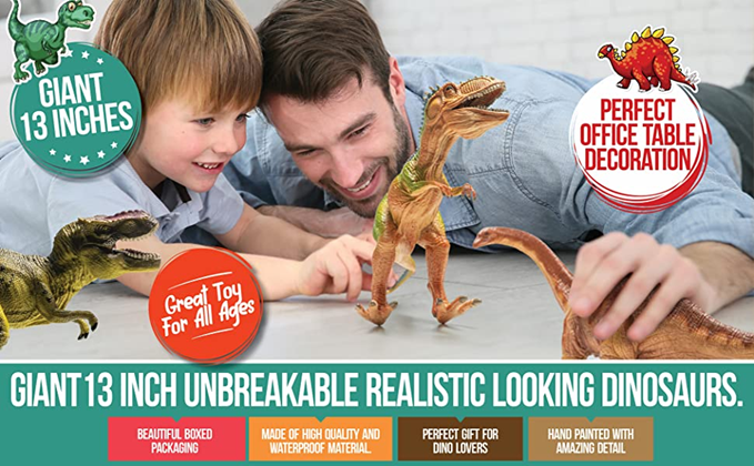 4 Prextex Brand Jumbo 13” dinosaurs- inspire imaginative play and curiosity about science.