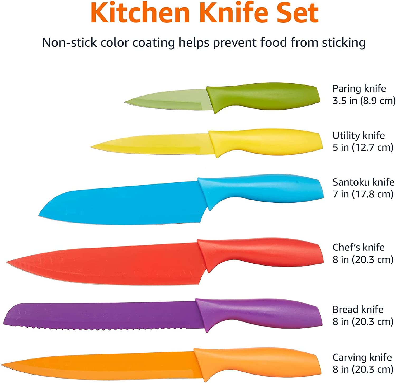 Amazon Basics 12-Piece Color-Coded Kitchen Knife Set, 6 Knives with 6 Blade Guards