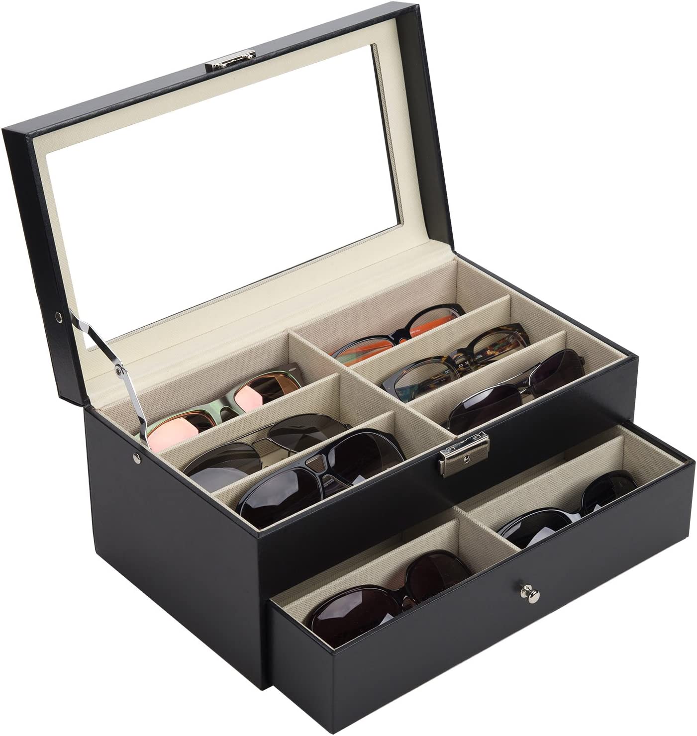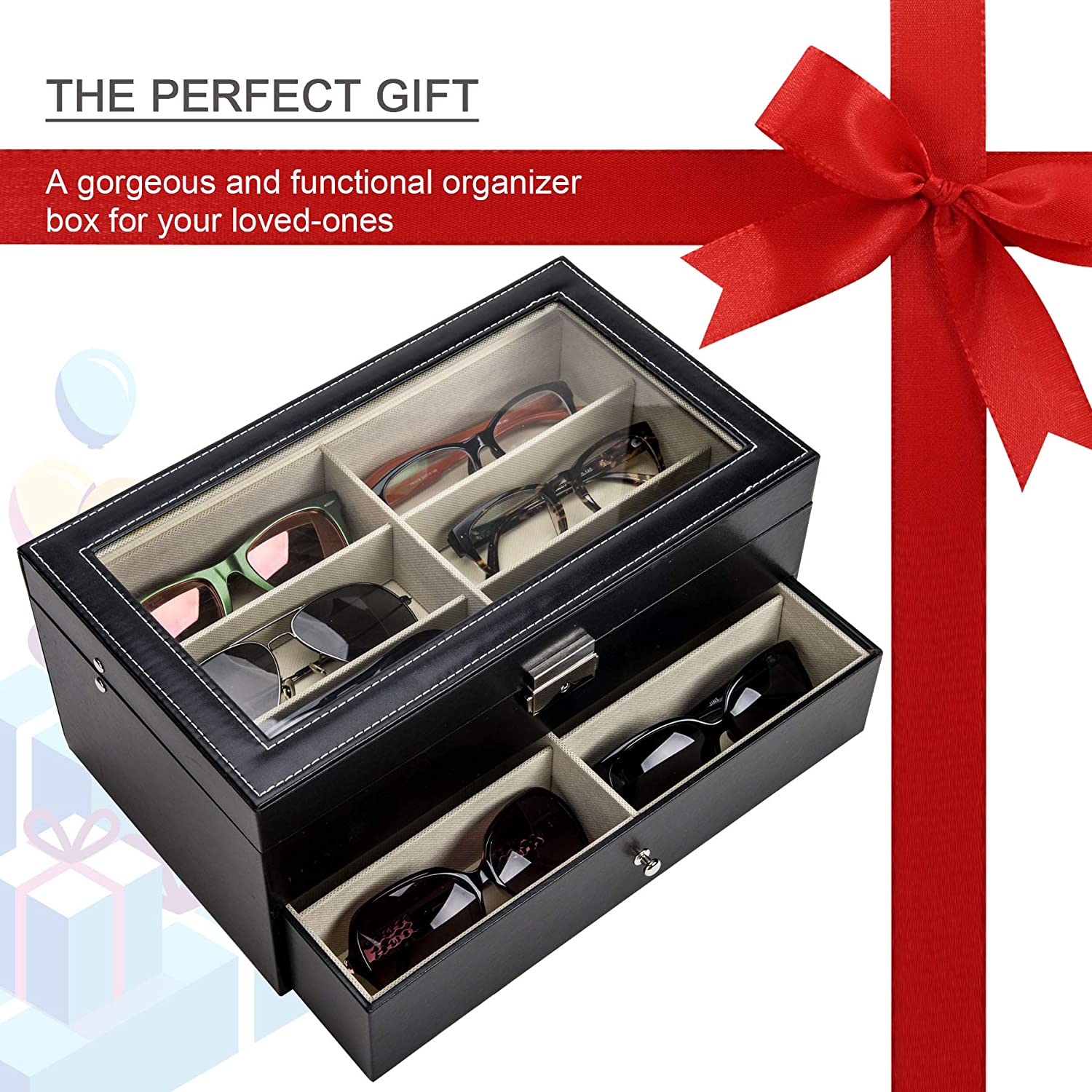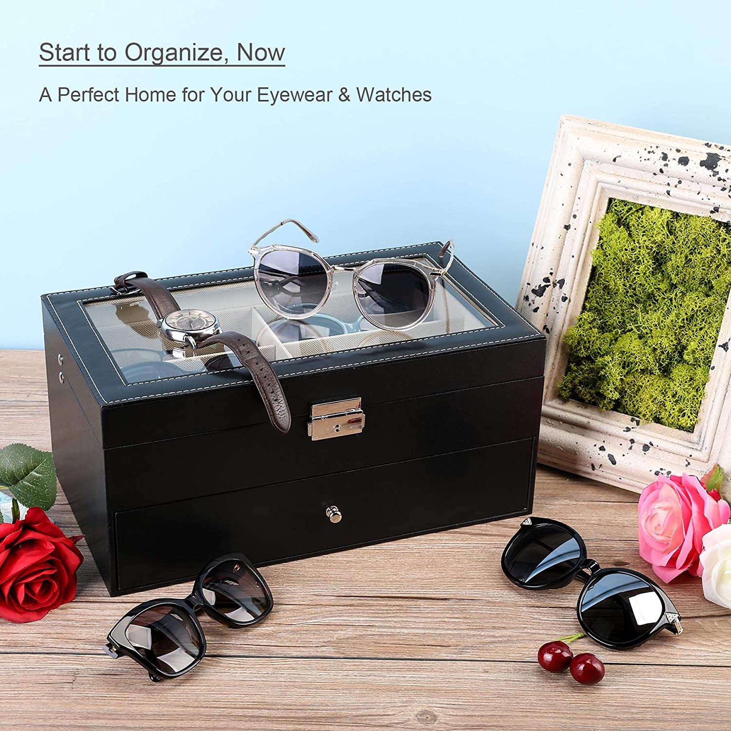 Easier to Pick A Style ----- Transparent acrylic top allows you effortlessly to see through the box, making it super handy to pick a pair of glasses or watch to match your outfit