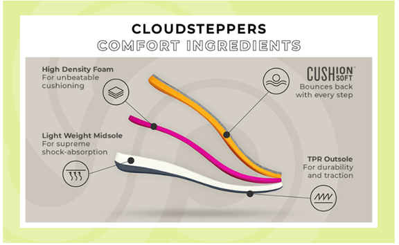 • Comfort Features: Ortholite footbed, EVA outsole, soft textile lining
