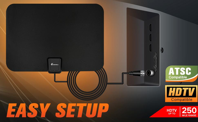 - Long Range Reception - HD TV antenna can reach 250 miles long and can be placed almost everywhere at home. With extra long 16.5ft coaxial cable, you can place the indoor antenna where the signal. Makes indoor TV antenna easier to get the reception, especially for whose televisions are quite far away from windows.
