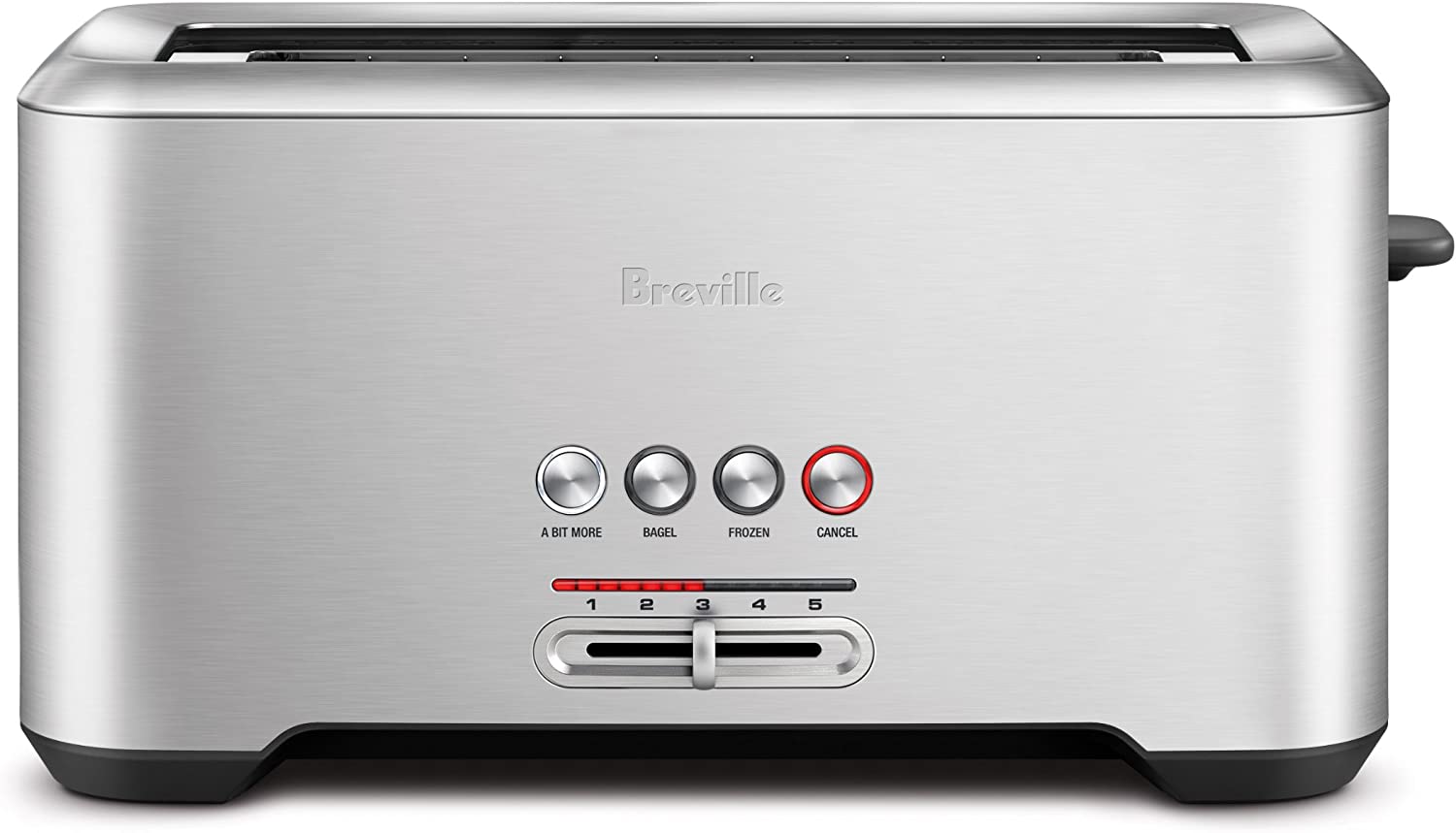 - The Breville Bit More is a long 4-slice toaster with an LED that allows you to monitor your progress; If you feel you need 'A Bit More' simply press a button to add a little extra time to the toasting cycle or check on your toast with "Lift & Look"