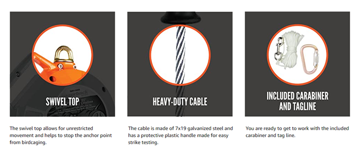 • CONVENIENCE & PORTABILITY: The built-in easy-carry handle of our Razorback Heavy-Duty SRL makes it easy to transport and move around your work site. The 360° swivel top connection allows you to move freely and comfortably without frustration of attaching and detaching the lifeline