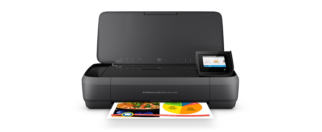Print, scan, and copy from nearly anywhere with this portable all-in-one. Detect and connect to a nearby OfficeJet 250 and print using Bluetooth® Smart or Wi-Fi Direct. Ideal for mobile professionals and telecommuters who need a high-quality, reliable, portable all-in-one they can take virtually anywhere. Quickly print, copy, and scan multipage documents hands-free with the 10-page automatic document feeder and color touchscreen. This durable, compact all-in-one fits in your car, backpack, and more for convenient printing anywhere. Start printing right out of the box with quick and easy setup. Get the highest page yields of any in-class all-in-one, using Original HP cartridges. Plug in your AC power source to charge within 90 minutes while the printer is off.