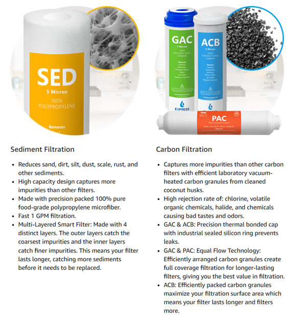 - Reverse Osmosis Filter Replacement Set: Each Express Water replacement filter is specially designed to work together and compliment each other. Get the cleanest water and the best value in your filtration