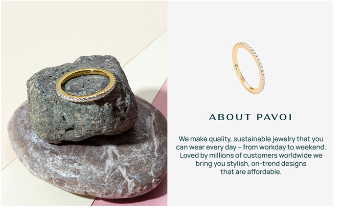 ✦ SUSTAINABILITY ✦ PAVOI is dedicated to sustainability throughout our entire product cycle. Our jewelry is made from 100% recycled materials and we package in 99% recycled and compostable materials. We work to reduce our carbon emissions and offset plastic consumption by removing 275,000 bottles from oceans annually. We are committed to maintain a balanced and eco-friendly business that minimizes our environmental impact. Trust that PAVOI is continuously working towards a greener future.