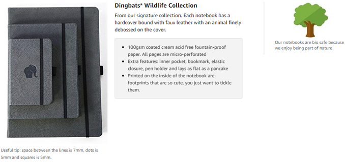 • THE ONLY VEGAN CERTIFIED NOTEBOOK: Made from recyclable materials and purely FSC certified paper, this handsome lined notebook is 100% Vegan Certified! We wear this badge with honour, and hope you join our pledge to make the environment a better place, one Dingbats pocket notebook at a time! For its UK sales, Dingbats* Notebooks Ltd donates 2% of its revenue to WWF-UK, a charity registered in England and Wales (1081247)