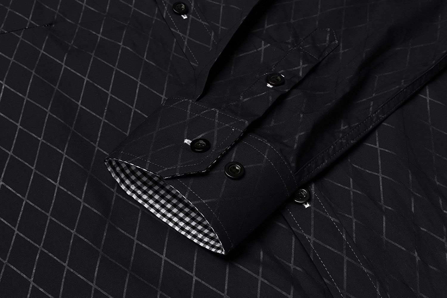 • Features: Slim fit button down shirt, solid color, obscure plaid pattern, contrast color plaid collar and cuff,long sleeve button collar dress shirt