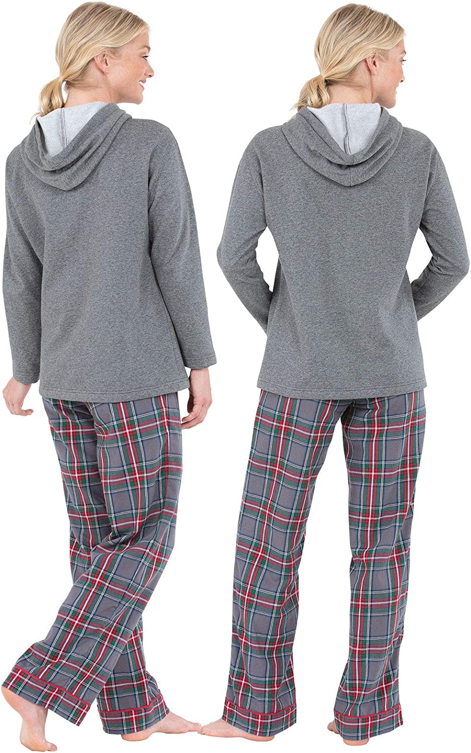 Matching styles - Everyone loves a hoodie - this 2-piece Pajama Set for Ladies has a men's style that matches it flawlessly; Keep the cozy couple closer this holiday and beyond with perfectly paired flannel pajamas for him and her