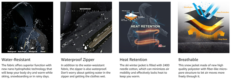 • WATER REPELLENT: Professional water repellent jacket, keep your body always dry and comfortable, you won't worry about getting wet while skiing, snowboarding, hunting, hiking in inclement weather
