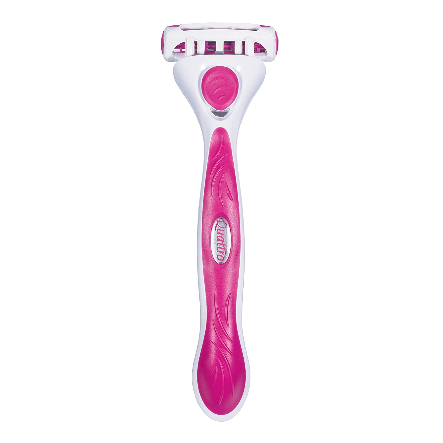 The Schick Quattro for Women Value Pack Razor now with 4 cartridges offers an incredibly close, silky smooth shave at a great value! With its pivoting, 4 ultra-thin blades, the razor provides flexibility and an effortless glide along the contours of your legs and body. The easy-to-grip rubber handle feels comfortable and balanced in your hand, while the conditioning strips formulated with Aloe & Vitamin E, help to reduce irritation - for a shave so smooth you can skip a day or two. Choose between Schick Quattro for Women Ultra Smooth or Sensitive blade refills for long-lasting, smoothness. All Schick Quattro for Women Refills can be used with any Schick Quattro for Women Razor.