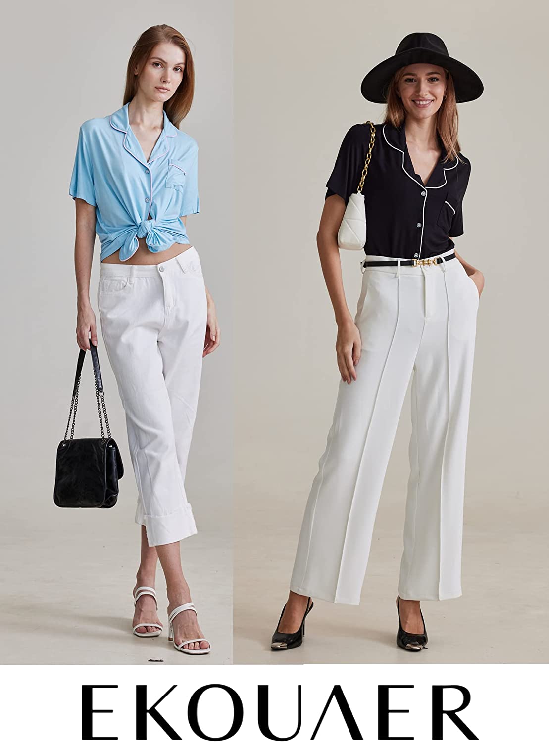 Ekouaer Women's Two-Piece Sleepwear Short Sleeve Pajama Set Pj Shorts XS-XLPajama set for women made from 95% Polyester/5% Spandex.Ultra soft and cozy Ekouaer sleepwear.Two piece pajamas set featuring short sleeve top and pj shorts for relaxed fit.This classic sleepwear with superior stitching and perfectly-lined hems. Breathable and Comfy sleepwear set.Ekouaer Pajamas Set Short Sleeve Sleepwear Womens Button Down Nightwear Soft Pj Lounge Sets XS-XXLPajam Top: Short sleeve sleepwear with button down pajama shirt hits at hip ,chest pocket with notch collar.Great for sleeping,casual wear or lounging around the house or yard all dayPajama Bottom: Pj lounge shorts with chiffon drawstring elastic waist.Summer pajama set is perfect for sleepwear,night wear or loungewear.This soft pajamas for women is the best sleepwear.Multiple colors pjs for women that suitable for the needs and preferences of different occasions.Two piece pajama set are perfect for pajama parties,bridal,dorm rooms,fun family pajamas pictures.And this short sleep set with high quality is also great for as a birthday,Valentine's Day,Christmas,New Year,Wedding and any other holiday gift set for your mom,wife,daughter and friendsEkouaer Sleepwear Short Sleeve Soft Cozy Pajama Set Silk Sleeping WearEco-friendly fabric:Body: 95% Polyester/5% Spandex.Easy fit and lightweightTwo-piece sleep pajama set featuring short sleeve top and boxer shortsTop: button-down with notch collar ,chest pocket with Ekouaer logo embroidery,and chiffon trimBottom: Short pants featured Elastic waist with chiffon drawstringMachine washable. To prevent wrinkles, promptly remove from dryerOur size are standard US size,please just choose your normal sleepwear size.