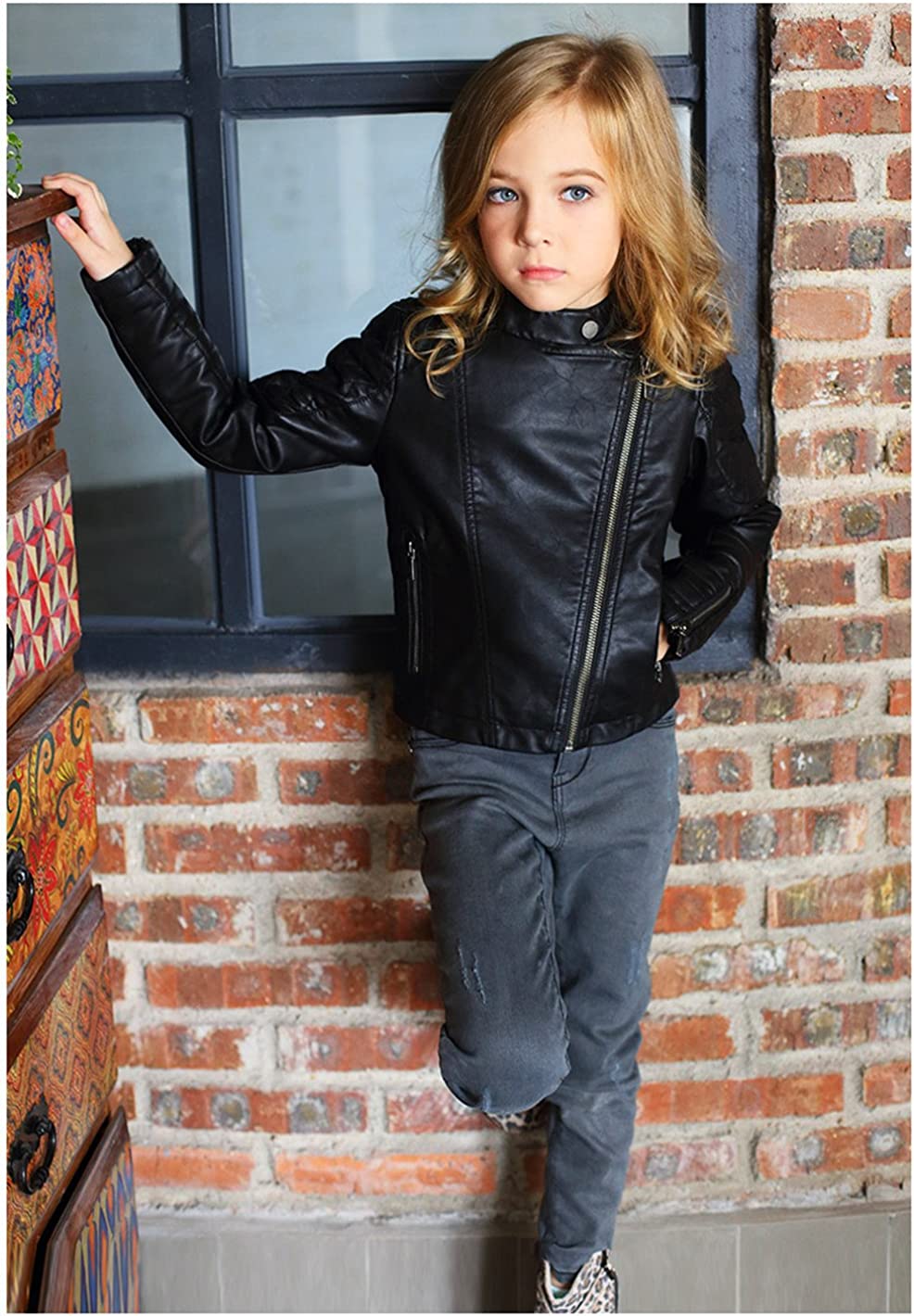 Grils Moto Bomber Faux Jackets, Zipper Closure, Pockets on Both Sides of The Waist, Stand Collar, Short Waist Style.