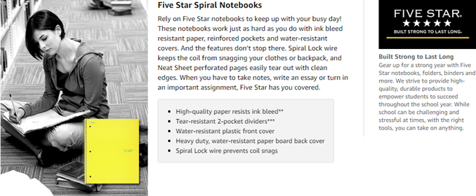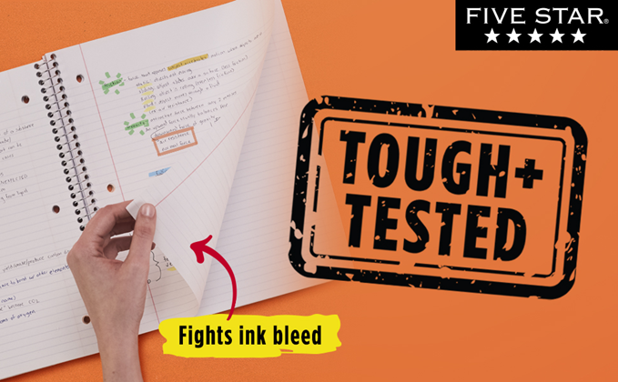 LASTS ALL YEAR. GUARANTEED!* This Five Star 5 Subject Notebook is full of features. Compatible with the Five Star study app, you can easily scan, study and organize notes on your phone! Create instant digital flashcards and sync notes to Google Drive and access them anywhere from any device. 5 subject notebook has 200 double-sided, college ruled sheets, which fight ink bleed. Sheets measure 8-1/2" x 11" and are perforated for easy tear out. Tough pockets help prevent tears and hold 8-1/2" x 11" loose sheets and handouts. Covers are water resistant to protect your notes and our Spiral Lock wire helps prevent snags on clothes and backpacks. Made with SFI certified paper. Notebook is recyclable – just remove the reinforcement tape on the pocket and recycle the rest! 6 pack available in Black, Fire Red, Pacific Blue, Forest Green, White and Amethyst Purple.