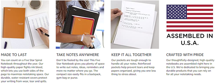 LASTS ALL YEAR. GUARANTEED! This Five Star 5 subject notebook has 180 double-sided, college ruled sheets, which fight ink bleed. Four 2-pocket dividers hold 9 1/2" x 6" sheets, while tough pockets help prevent tears. Notebook also has water resistant covers. Neat Sheet perforated sheets make it easy to tear out assignments. Spiral Lock wire binding prevents coil snags on your clothes or in your backpack. Sheets measure 9 1/2" x 6" when torn out. Overall notebook size is 9 1/2" x 7 1/4". Guarantee is valid for one year from purchase date. Does not cover misuse. PLEASE NOTE: COLOR CHOICE IS NOT AVAILABLE FOR THIS ITEM, COLOR SHIPPED TO YOU IS SELECTED AT RANDOM, AND WILL VARY.