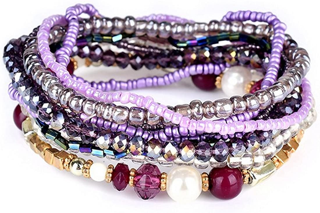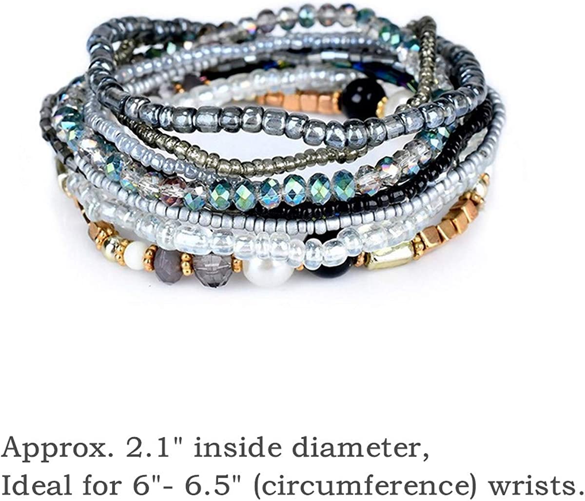 MengPa Stackable Beaded Bracelets for Women Bohemian layering Strand Statement Jewelry