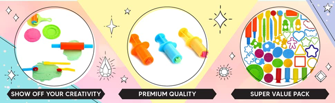 - Endless Fun: Extruder Shapes (Spaghetti, Heart, Star etc.) and Molds (Animals, Plant, etc.) Allow Children to Learn About Shapes. Dough Tools (Rolling Pins, Cutters etc.) Allow Toddlers to Practice the Ability of Hand-eye Coordination and patience as They Play.