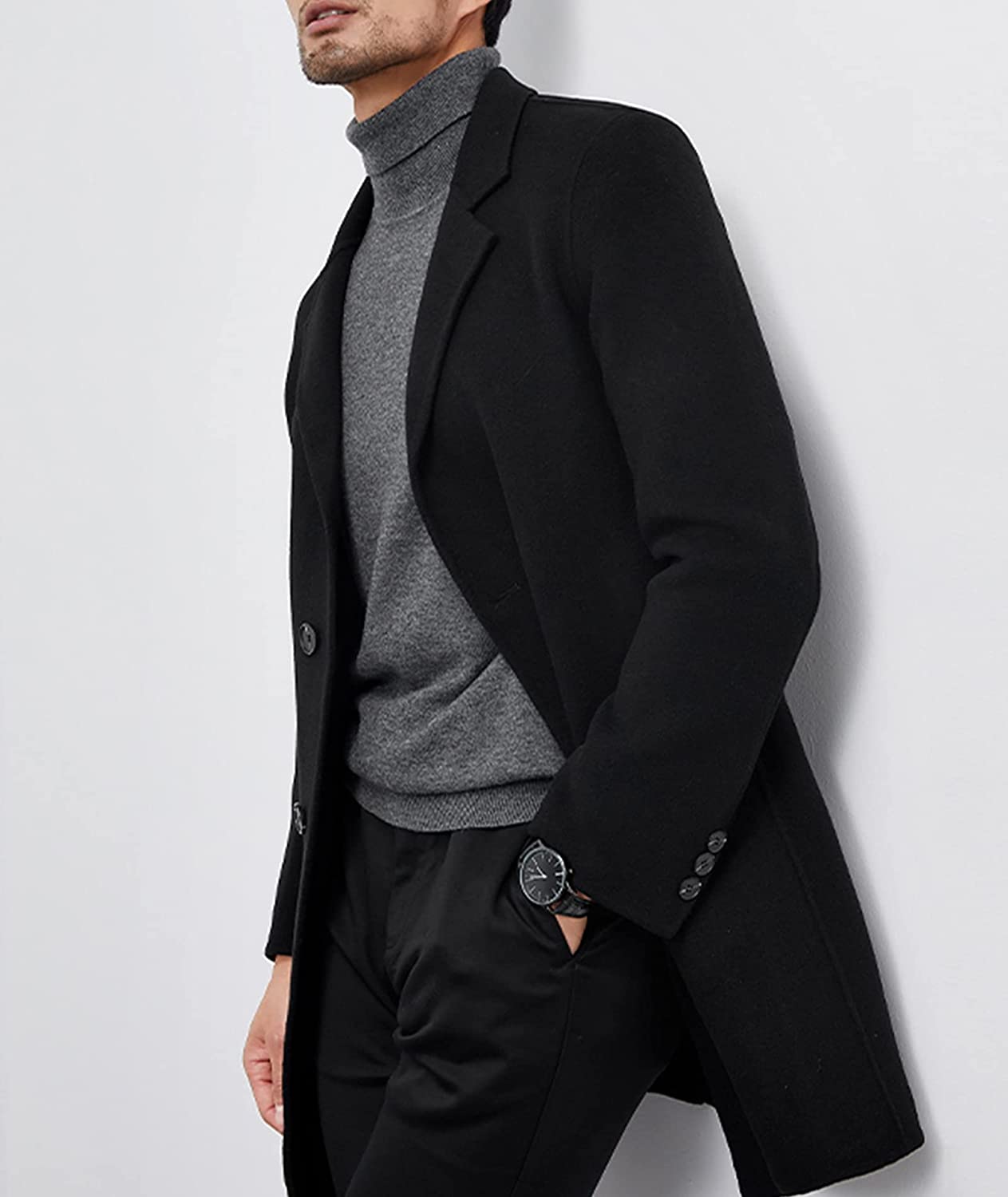 ESSENTIAL STYLISH TOPCOAT--3D cutting mens long overcoat, neat car line, simple and fashion timeless design to show it's luxury and brings you a elegant look during the cold winter. They are designed for both formal and casual occasions. Easy match with sweater, sports, suits and shirt.