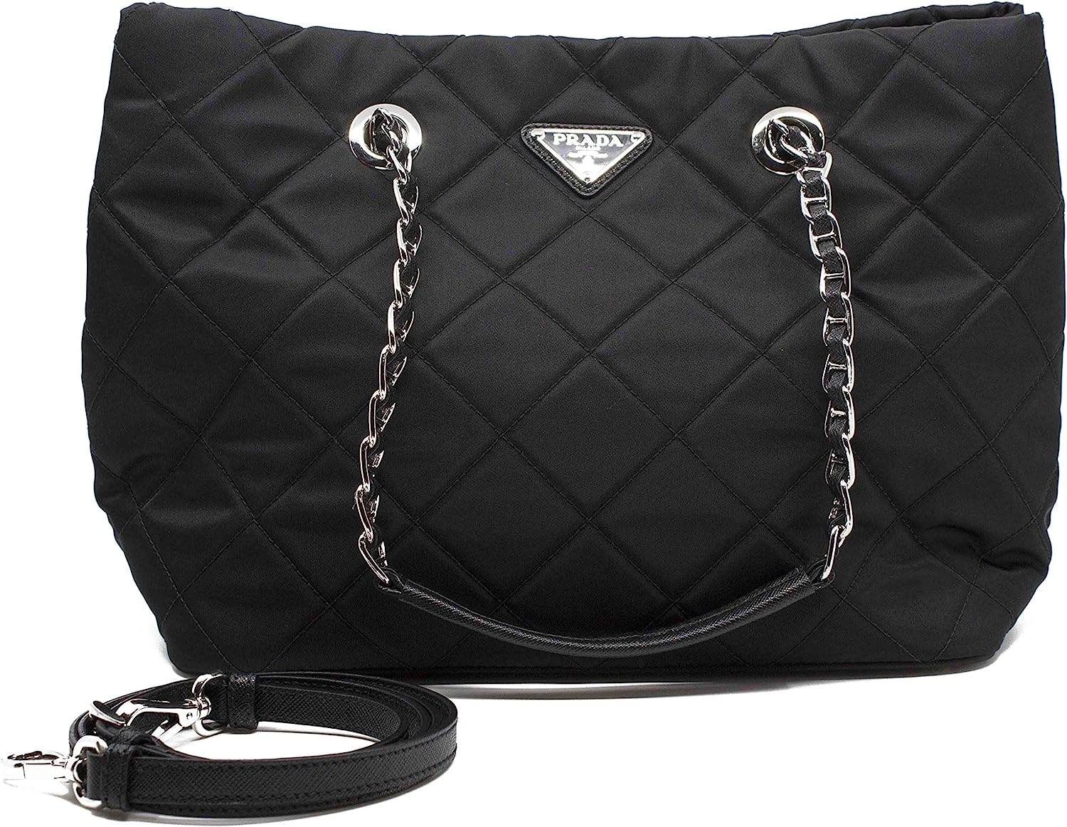 Prada Midnight Black Quilted Tessuto Chain Designer Shoulder Tote Bag for Women 1BG740