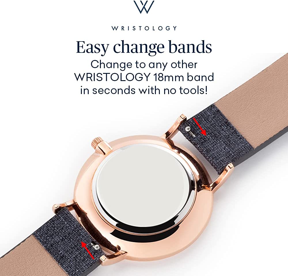 Wristology 29 Options - Maxi Leather Band Roman Numerals Boyfriend Watch - Interchangeable Genuine Leather Strap - Large Easy to Read Analog Face for Women or Men