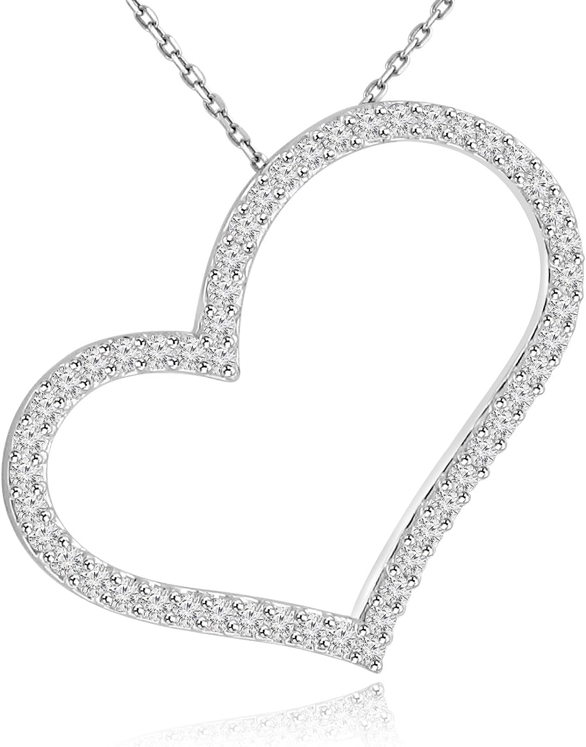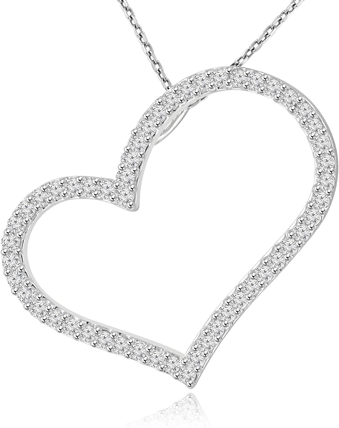 Madina Jewelry 1.53 ct Round Cut Diamond Heart Shape Pendant Necklace (G Color SI-1 Clarity) in 14 kt White Gold