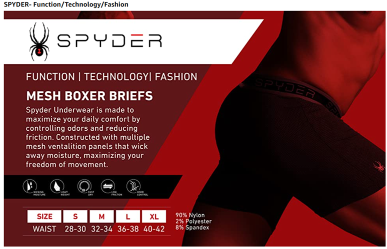 SPYDER Performance Sport Active-Wear men's boxer briefs are created to feel good on and off the field. Designed with the highest quality Fabric, for performance, durability, comfort-ability and extreme conditions. SPYDER Sports Performance Mesh Boxer Briefs underwear is made to Maximize your daily comfort by controlling Odors and Reducing Friction. It is Constructed with Multiple Mesh Ventilation Panels that Wick away Moisture and Maximize your Freedom of Movement.