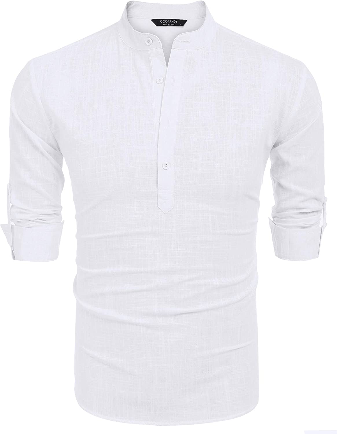• 【STYLISH DESIGN】: Casual henley neck shirts, stand collar, simple style, solid color, slim fit, long sleeve(Roll-up), button-down closure, rounded hem, featured button detail.