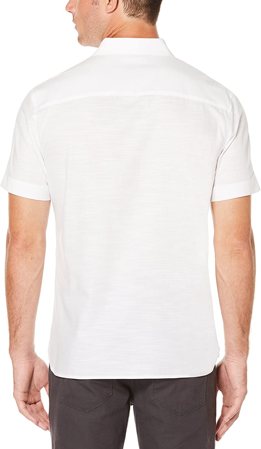 We crafted this casual button-down with a slubbed fabrication, creating slight knots in the fabric to produce a textured look and feel. This woven short-sleeve shirt is meant to be utilized on the weekends or as a double threat to your casual friday work wear. Pair it with some jeans or nice slacks and get moving to wherever your night takes you.