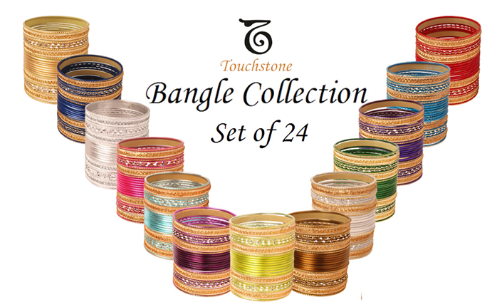 Touchstone "Colorful 2 Dozen Bangle Collection" Indian Bollywood Golden Glaze Designer Jewelry Bangle Set Of 24 for Women.