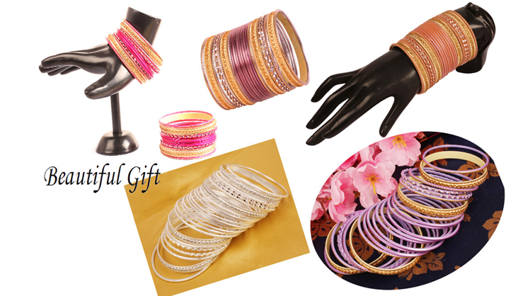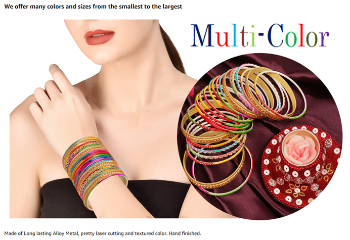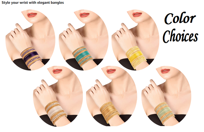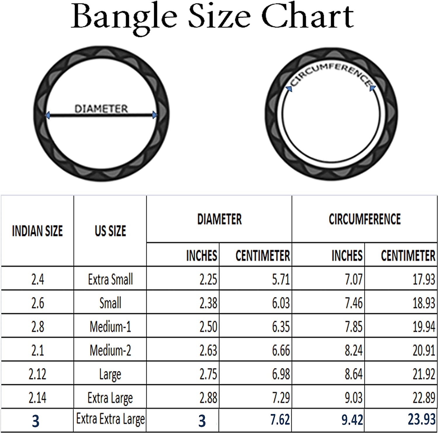 • Touchstone "Colorful 2 Dozen Bangle Collection" Indian Bollywood Alloy Metal Textured Purple Golden Designer Special Large Size Bangle Bracelets Set Of 24. In Antique Gold Tone For Women SIZE : LARGE. Indian Size 2-10. Inner Diameter 2.625 Inches or 6.67 cm. Please check against old Bangle before ordering to avoid disappointment