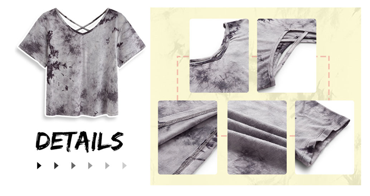 SweatyRocks Women's Tie Dye Criss Cross Back Short Sleeve Crop Summer T Shirt