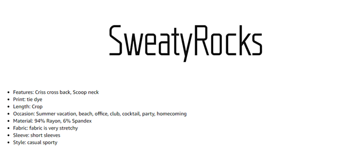 Features: Scoop neck, short sleeve, criss cross back, crop t shirt