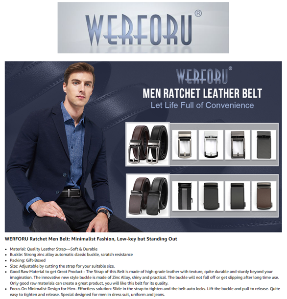 • This is a new style high quality leather ratchet dress belt, Comfortable and easy to adjust if needed. A simple tug and click is all it takes.✦ WERFORU Package includes 2*belt, 1*screwdriver and 1*instruction card with coupon code.